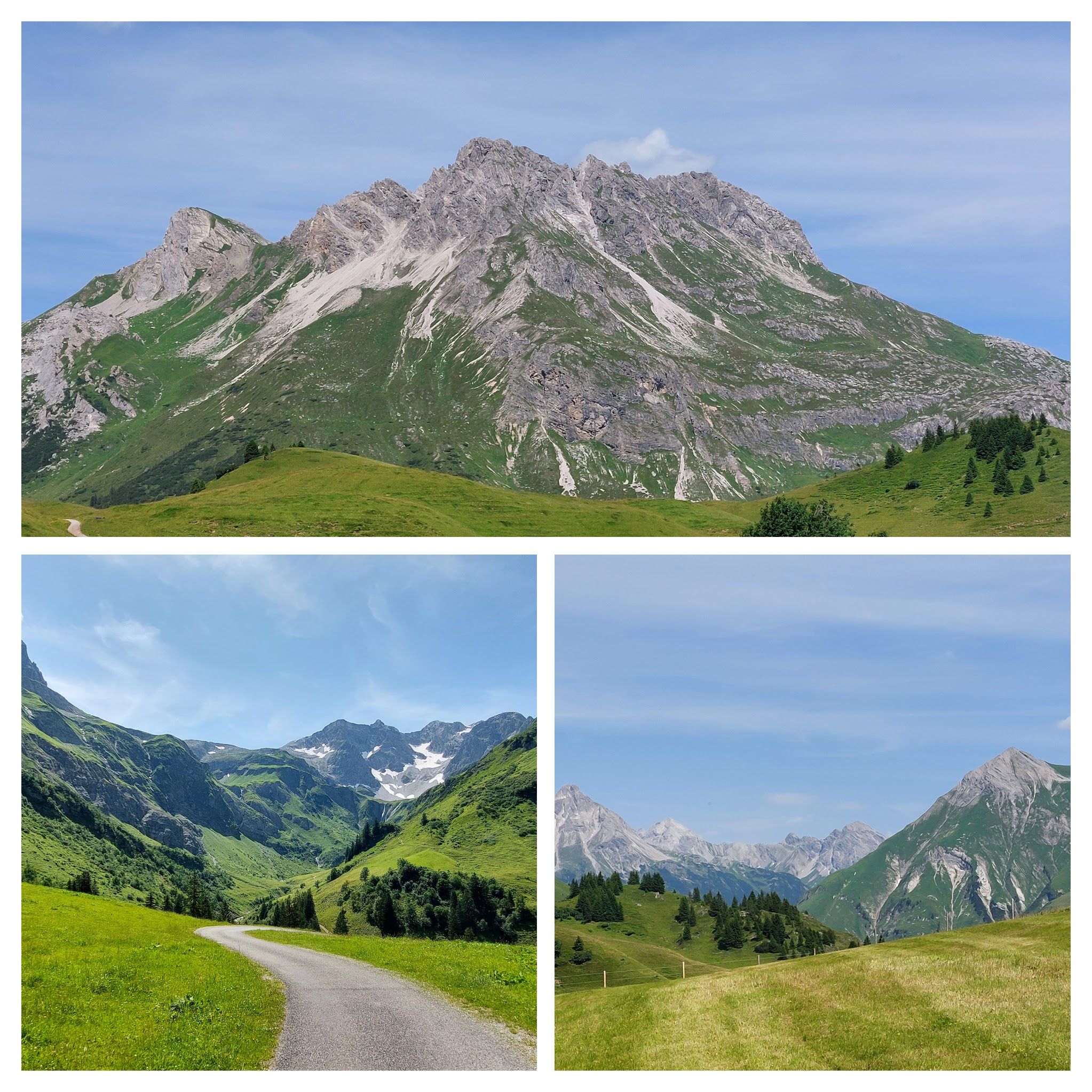 Unten im Tal angekommen ging es dann weiter an der Bregenzer Ach entlang Richtung Schröcken, der Weg war super schön am Fluß entlang, zunächst auf freiem Feld später durch ein Waldstück.