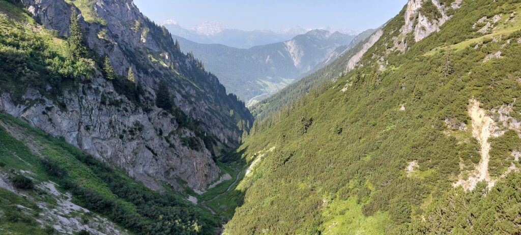 Der Blick zurück ins Verwalltal war zwar sehr schön, allerdings war es mittlerweile schon viertel nach zwei und wir hatten beide richtig Hunger. Außerdem lag noch der Aufstieg zur Heidelberger Hütte vor uns, das würde alles ganz schön knapp werden.