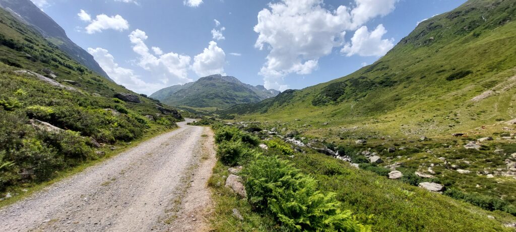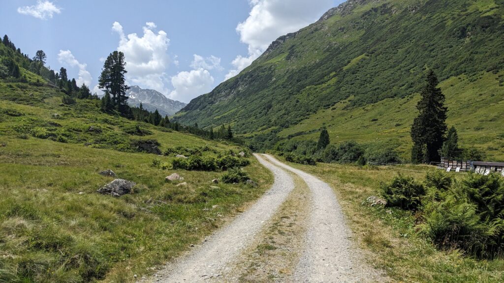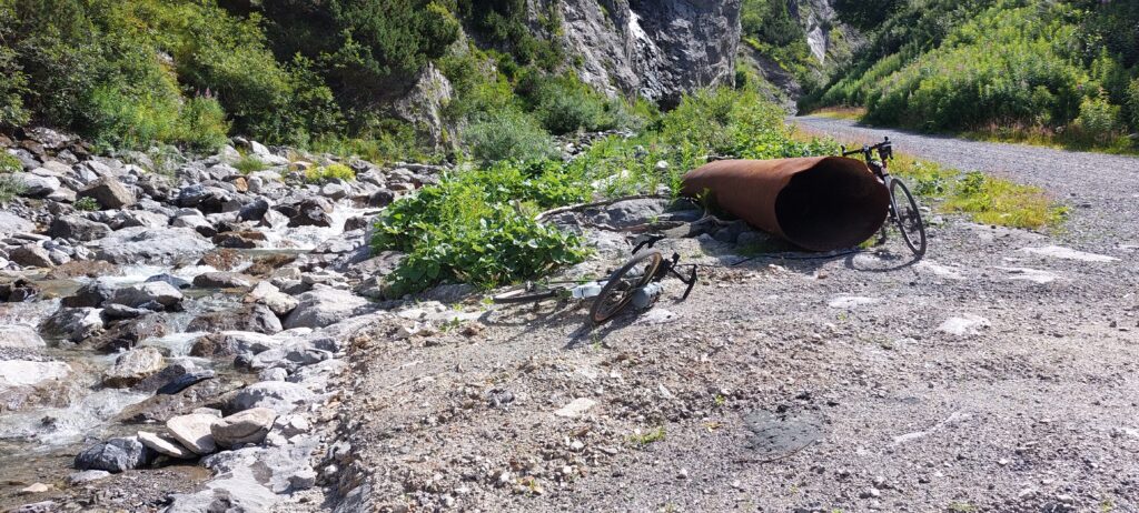 Kurz vor St. Anton fuhren wir dann scharf nach rechts ab und hinein in das wunderschöne Verwalltal. Entlang dem Bach mit dem schönen Namen Rosanna fährt man zunächst auf besten Gravelpisten in das Tal.