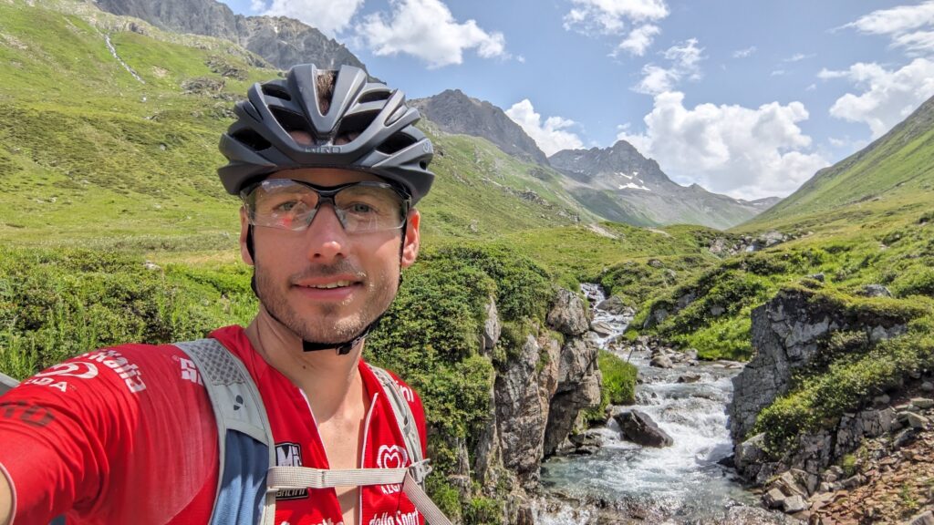 In Stuben habe ich mir dann in einem Sportgeschäft eine neue Sonnenbrille gekauft, da ich meine auf der Abfahrt am Vortag verloren hatte. Fabi ging zwischenzeitlich ein paar neue Riegel kaufen.